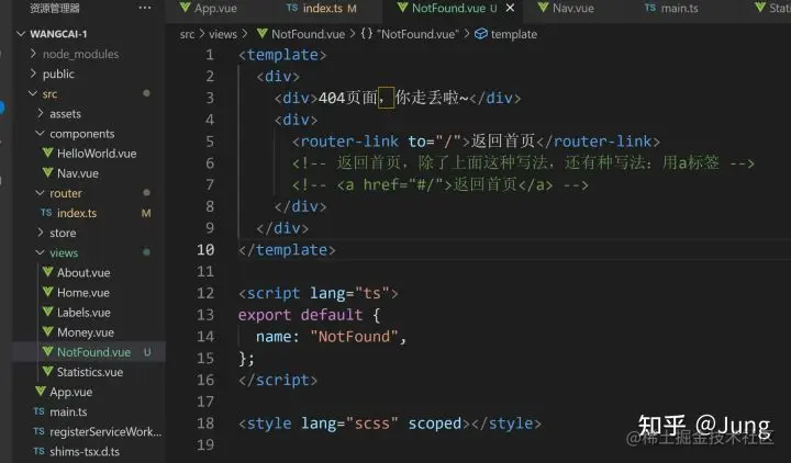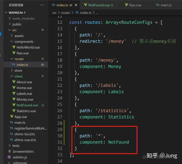 别忘了index.ts文件里import NotFound from '@/views/NotFound.vue'
