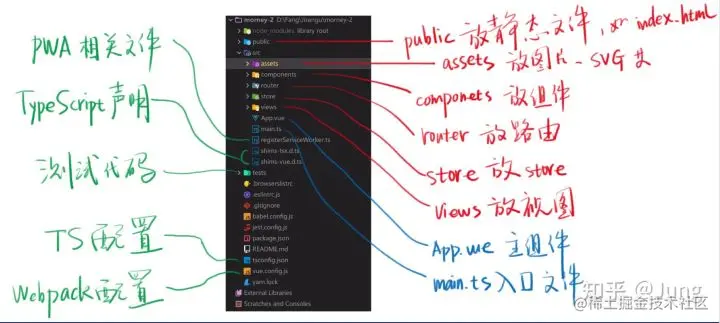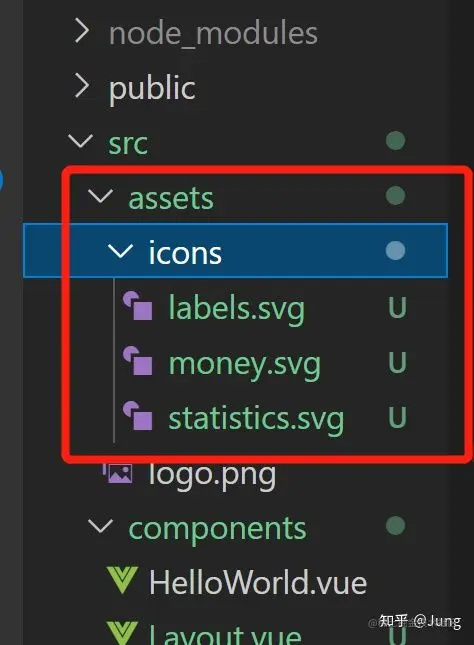 - assets(资源):除了HTML, CSS, JS, TS都放在这里. 比如图片, svg