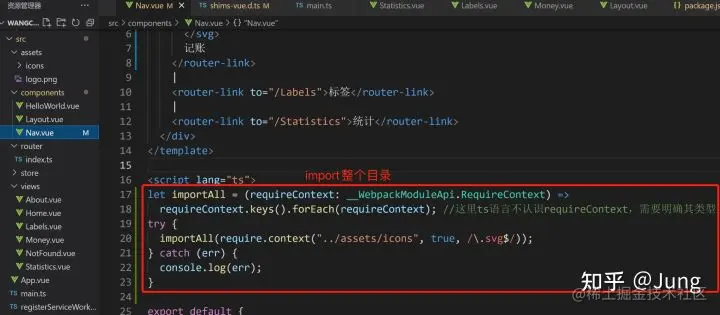 在封装Icon时,别忘了全局引入Icon 以及把Nav里的【improt目录这部分代码】挪到 Icon.vue里
