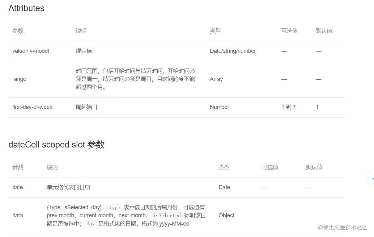 一开始直接上了 el-calendar,上了后,发现官方文档给的信息,太少了,没有暴漏任何事件出来,只有几个变量,