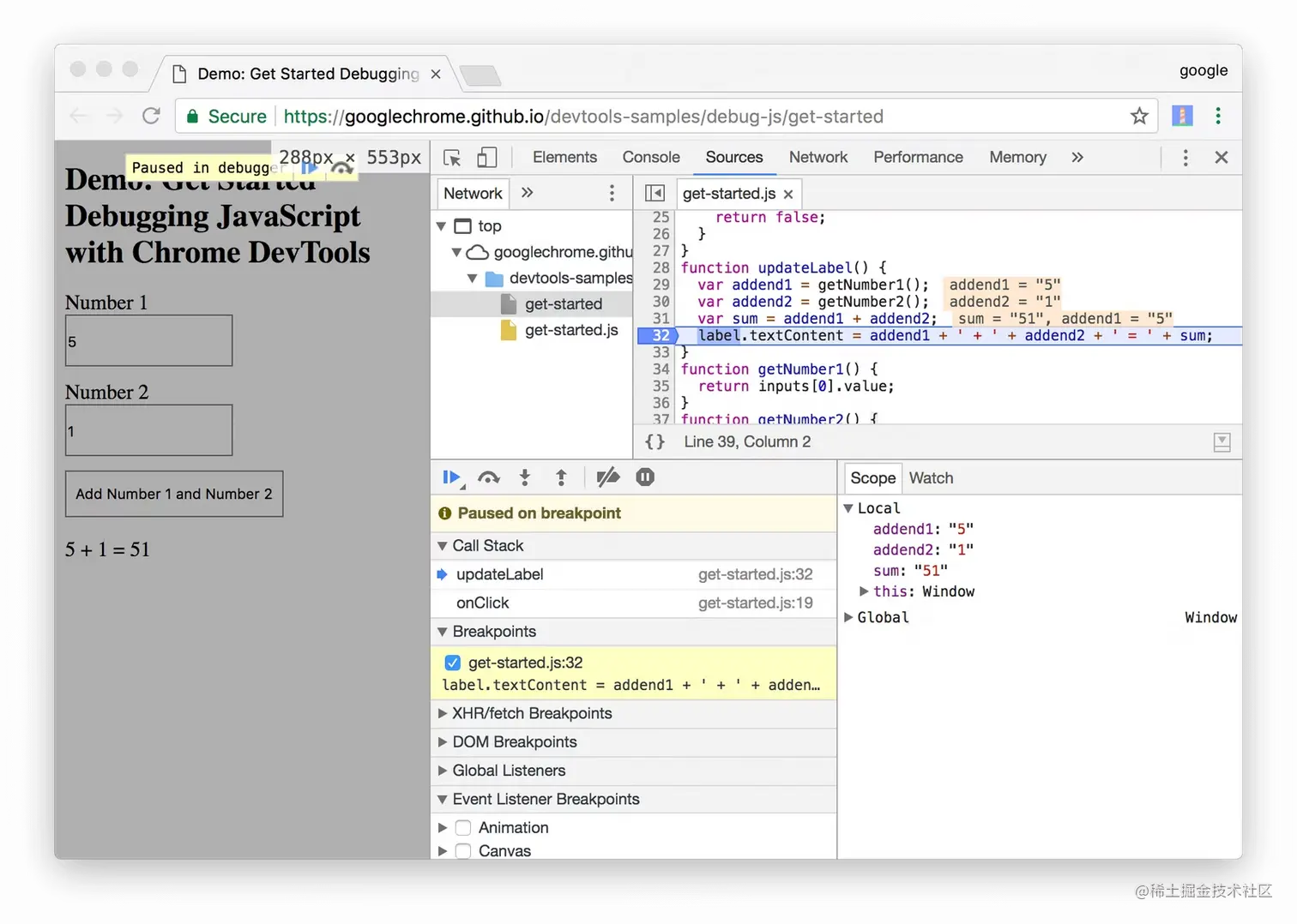 用Chrome打开一个网页,就可以直接在DevTools里面进行断点调试。