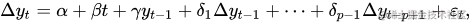 这里在ADF的数学表示中,我们加入了差分项,使ADF和Dickey-Fuller检验之间发生了变化。
