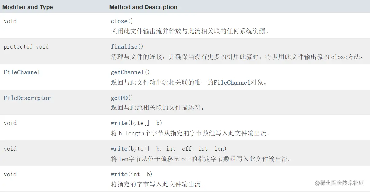 | FileWriter(File file, boolean append) | 给一个File对象构造一个FileWriter对象。 |