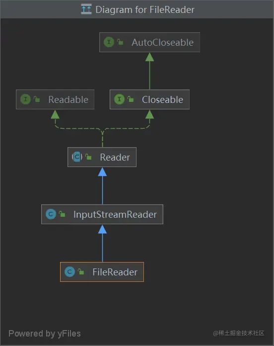 FileReader源码里面的结构只有这几个构造函数,调用了父类的构造方法,InputStreamReader是从字节流到字符流的桥:它读取字节,并使用指定的charset将其解码为字符。它使用的字符集可以由名称指定,也可以被明确指定,或者可以接受平台的默认字符集。