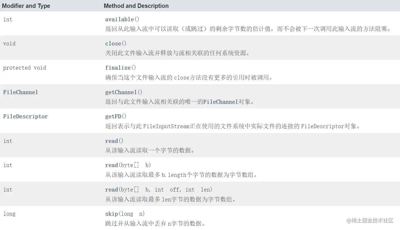 | void | close()关闭流并释放与之相关联的任何系统资源。 |