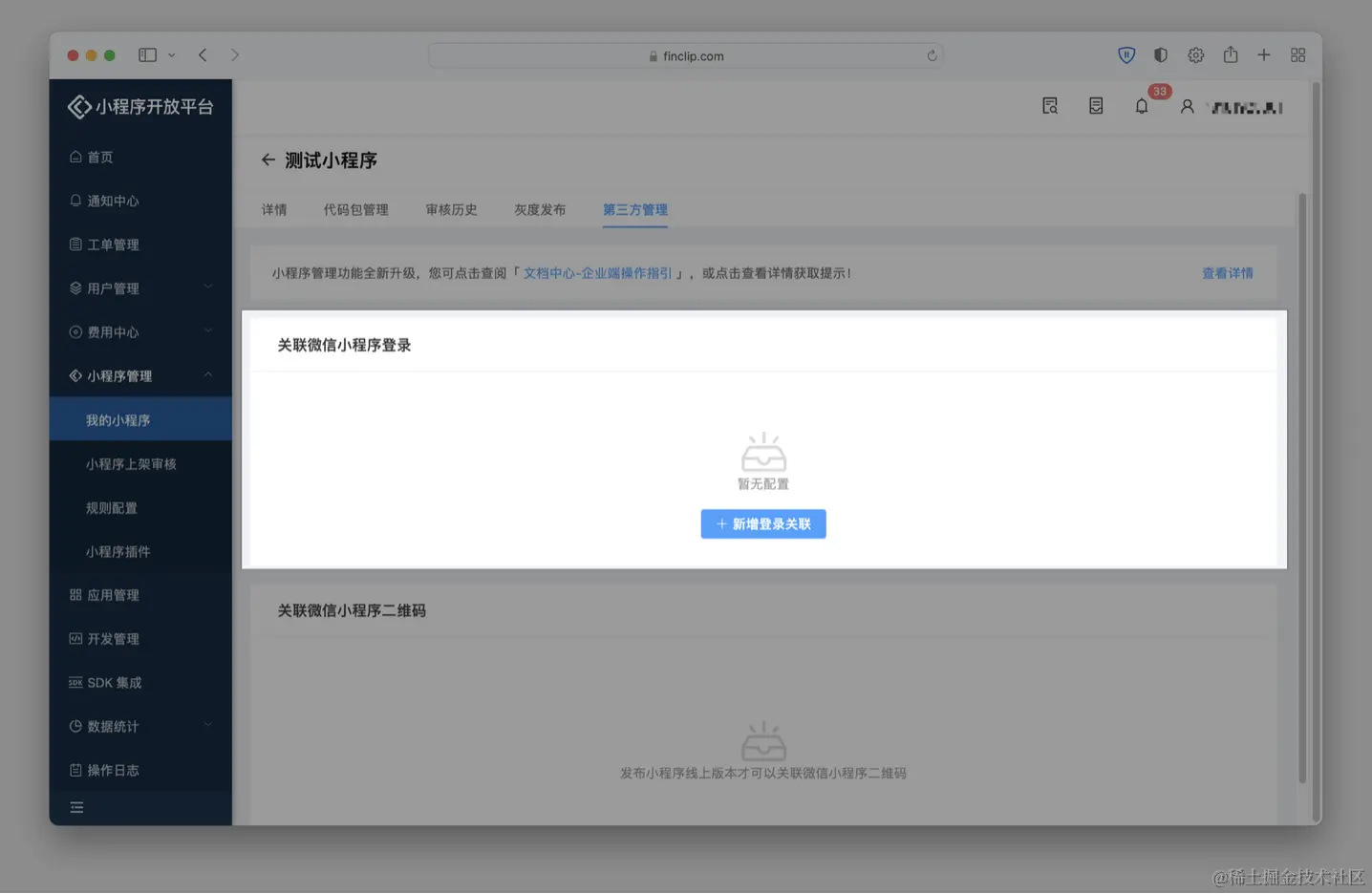 第一步:登录 FinClip 管理后台