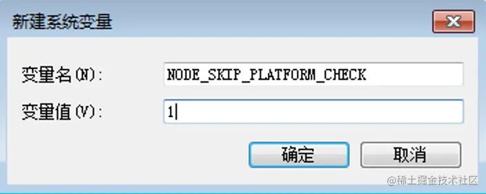 NODE_SKIP_PLATFORM_CHECK值为1命令行下执行