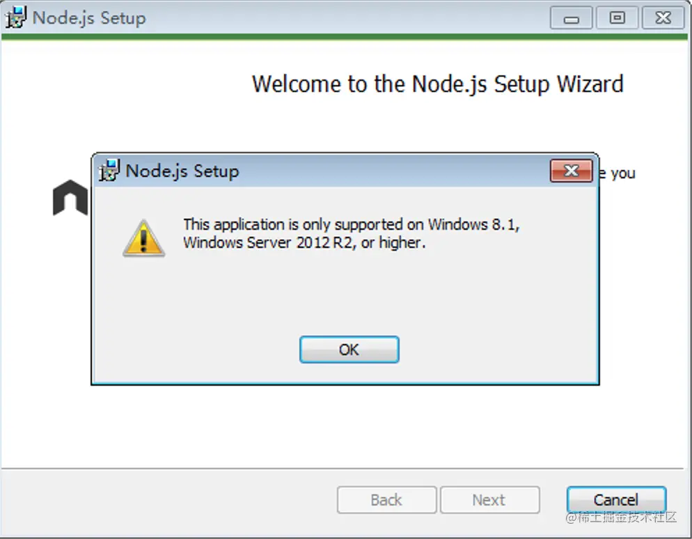 远程办公,连远程虚拟机,系统是Win7,项目环境node16,安装报错:This application is only supported on Windows 8.1, Windows Server 2012 R2, or higher。