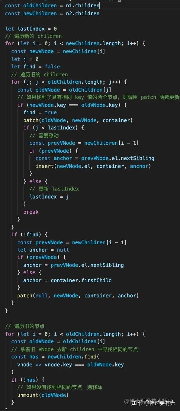 这样就是一个完整的 diff 算法了,包括查找可复用节点和移动节点、新增和删除节点。