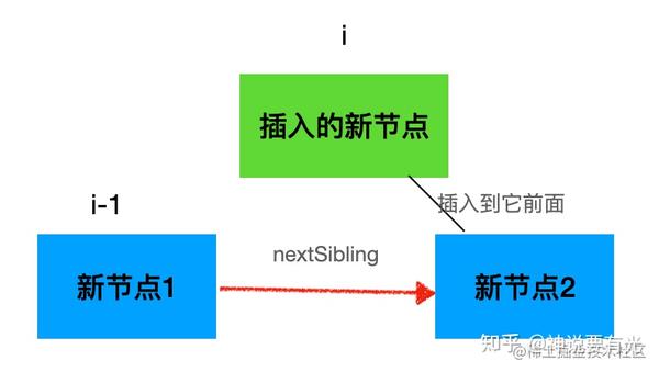 要插入到 i 的位置,那就要取 i-1 位置的节点的 nextSibling 做为锚点来插入当前节点。