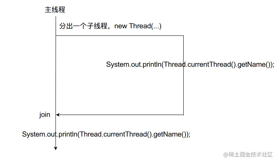 上面的任务很明确就是主线程在执行输出自己线程的名字的语句之前,必须等待子线程执行完成,而在Java线程当中给我提供了一种方式,帮助我们实现这一点,可以保证主线程的某段代码可以在子线程执行完成之后再执行。