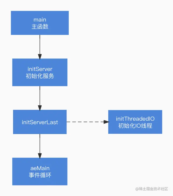 在Redis Server启动函数main(server.c文件)中初始化服务之后,又调用了InitServerLast函数: