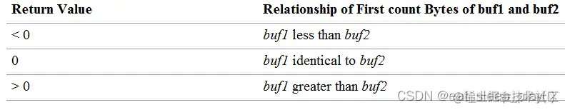 buf1 和 buf2 指向两块空间,count 表示向后在 count 个字节内部比较。
