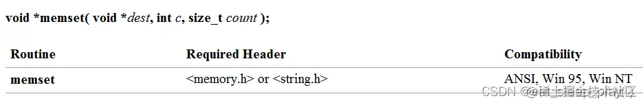 dest 参数是设置的填充空间,c 参数是要设置的值,count 参数是要设置的值的字节数