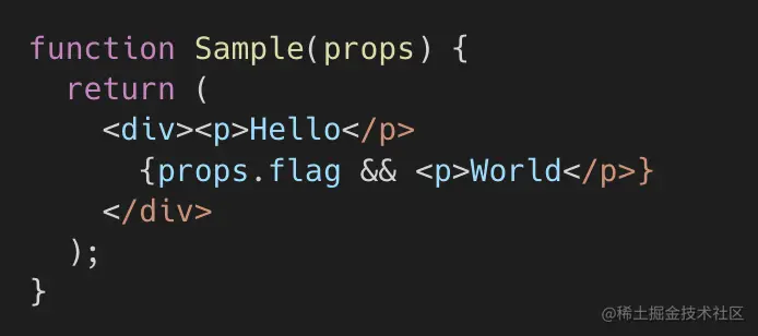 虽说是函数组件,但是添加子组件的逻辑不能用纯 JS 实现,需要在 JSX 定义,幸好 JSX 对这样的控制流逻辑也有一些支持。