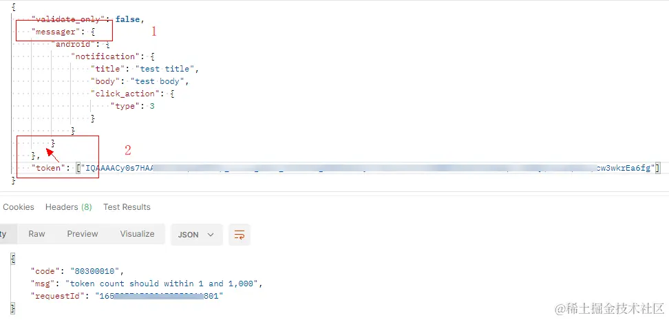 message字段包含token,与 "android"同级;