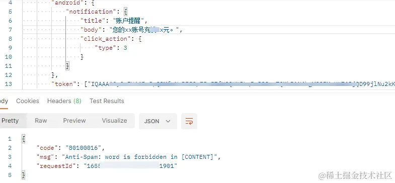 出现这种报错说明推送消息内容中含有敏感信息