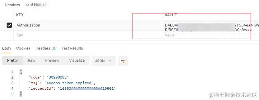 Authorization请求参数值中的Access Token已过期