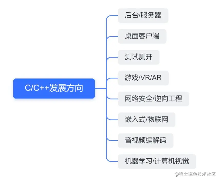 汇总C/C++的主要发展方向如下图所示,供大家参考: