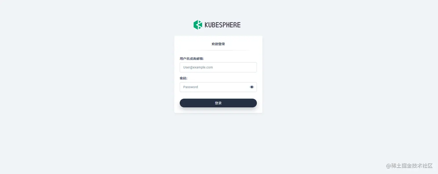 通过 http://{IP}:30880 使用默认帐户和密码 admin/P@88w0rd 访问 KubeSphere 的 Web 控制台,进行后续的操作配置。
