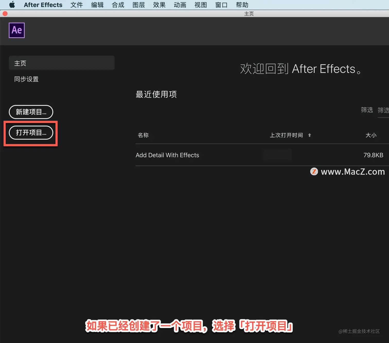 以上就是在 After Effects 中打开项目或创建项目的方法。