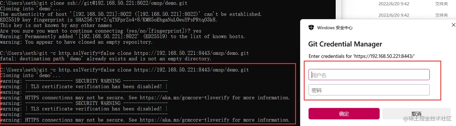 C:\Users\seth>git clone ssh://git@192.168.50.221:8022/omsp/demo.git