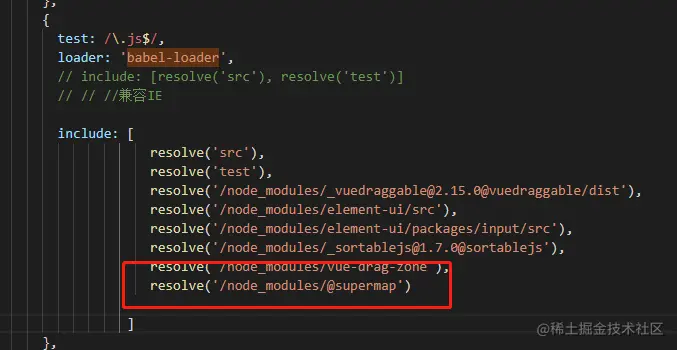 (webpack 解析es6 语法包含: @supermap 包,问题得以解决)