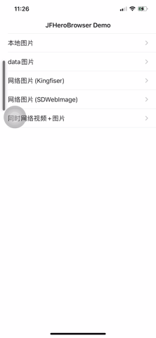 iOS下类似的图片浏览器不管是OC版本还是Swift版本目前已经开源了不少。但是作为一个六七年的老iOS开发者,以及自己曾经积累了的不少社交App经验,还是忍不住基于自己的想法以及目前项目中类似的组件重新撸了一个。毫无疑问,此次开源的JFHeroBrowser,首选语言是Swift(完全Swift不包含任何OC代码),偏向更Swifty的方式-面向协议处理数据模型,还有Swift进阶枚举用法,命名空间等,如果你想深入学习Swift,我相信本组件会让你有不同的体验,另外由于楼主同时也在开发Flutter,编码方式上也是更"响应式"。而且与大多数三方库内置ImageCache(大多是SDWebImage)不同,本组件,不包含内置的ImageCache,但是如果您集成了本项目作为图片浏览,网络图这块,您需要自行实现HeroNetworkImageProvider协议,可以使用Kingfisher或SDWebImage亦或是你项目中自行设计的图片缓存,完美解决组件耦合问题,具体使用参考下面用法。另外本组件支持多种资源格式,如本地图(UIImage),网络图(url),data(二进制),视频(url),甚至你自行实现ImageVM也可以接入你想要的资源。话不多说,我们来看具体使用方式。