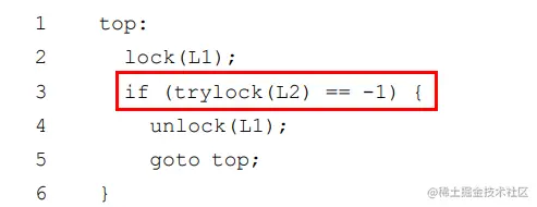 - 循环等待破解-->顺序获取锁: 获取锁时提供一个线性的锁, 每次都先申请 L1 然后申请 L2...以此类推