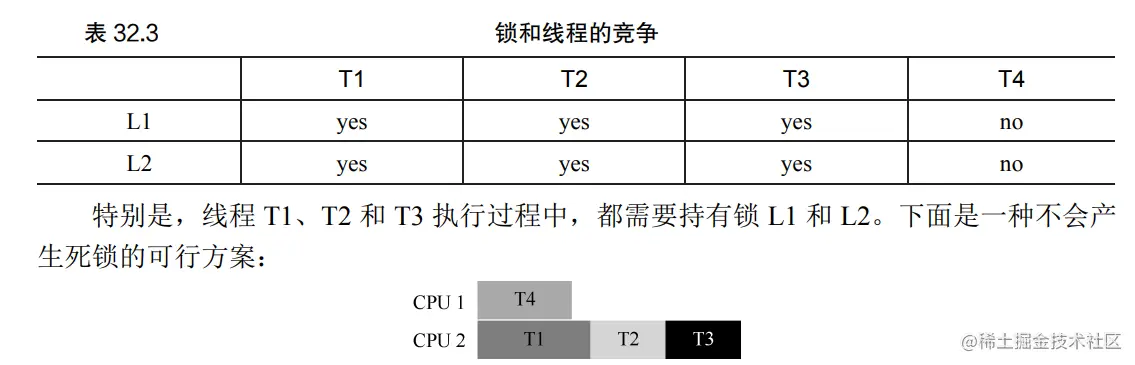 如果多个线程会互相抢占锁,我们就将其错开,如T1、T2 和 T3 运行在同一个处理器上,这种保守的方案会明显增加完成任务的总时间。但为了避免死锁,我们没有这样做, 而是付出了性能的代价。
