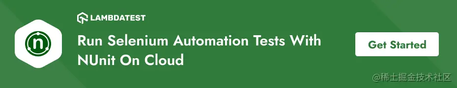 我使用NUnit是因为它是自动化网络测试最常用的框架之一,将有助于简化我们的测试编写过程。你可以通过这个Selenium NUnit教程来了解更多关于用Visual Studio设置NUnit的信息。NUnit的最新版本是3.13.3。以下是我最喜欢的NUnit的一些功能,它们在我的Selenium C#项目中帮助我。