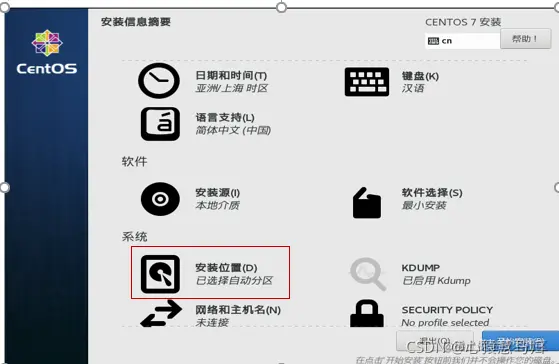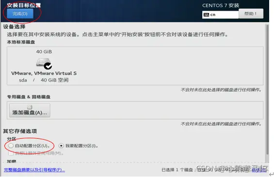(4)在安装信息界面,单击“安装位置”,弹出界面中点“自动配置分区”,再点”完成“,如图