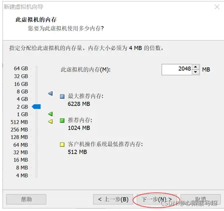 (8)自定义虚拟机的名称和文件夹的位置,选择默认的处理器配置,设置虚拟机的内 存为 2024MB,点击“下一步”按钮