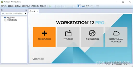 (4)在桌面找到 VMware Workstation 图标,双击运行打开软件,并在软件界面的“主页”窗口中,选择并单击“创建新的虚拟机”选项,创建新的虚拟机。
