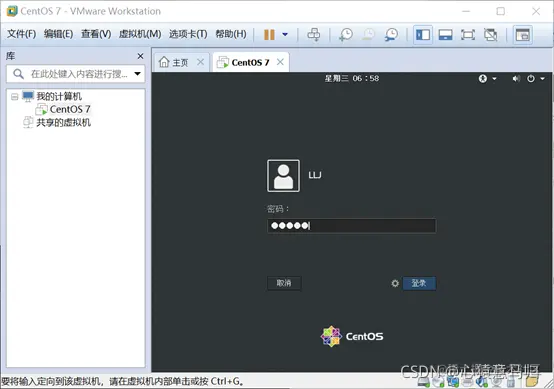(6)配置完成后,启动CentOS7,在下面的界面输入用户名和密码,登录系统即可。