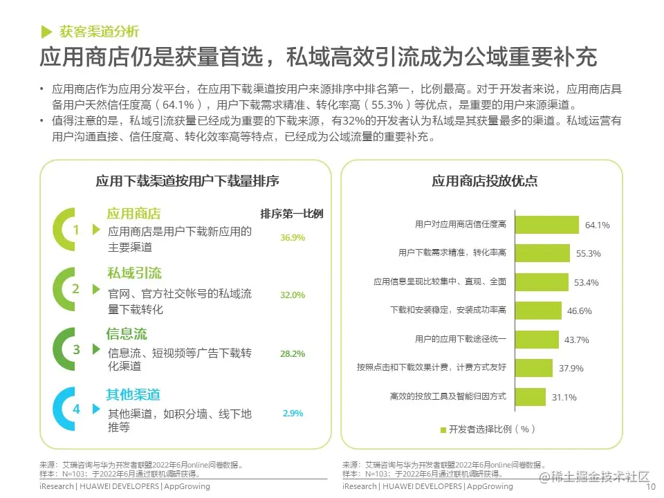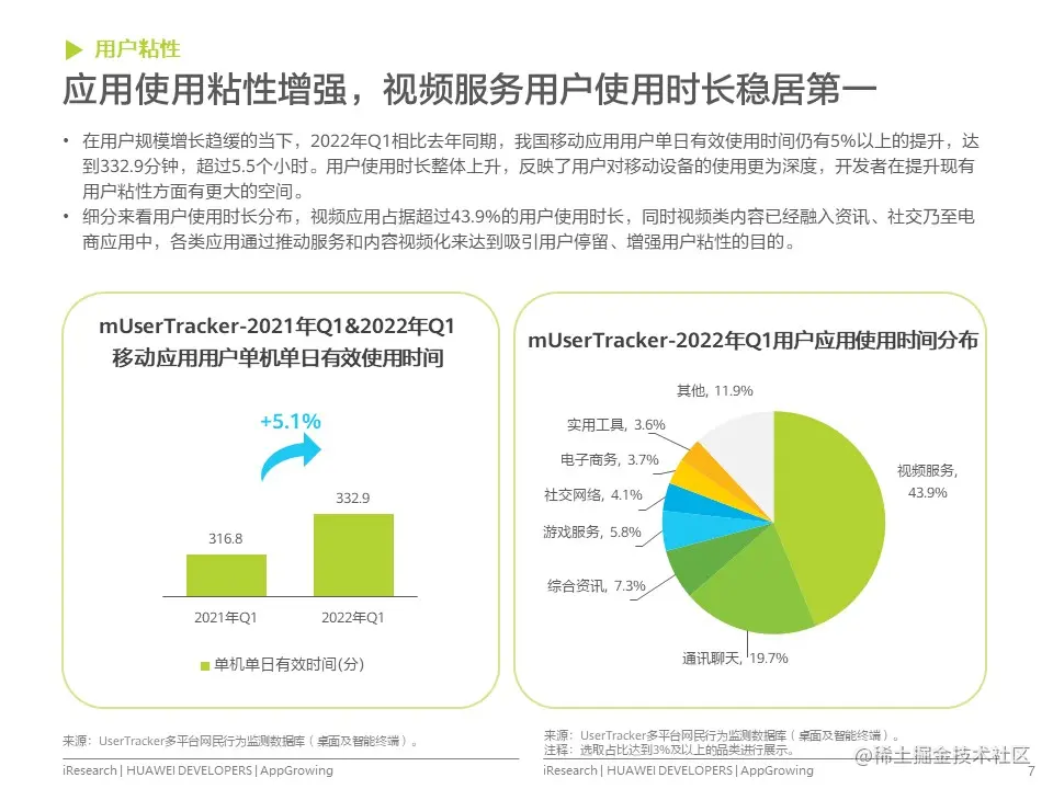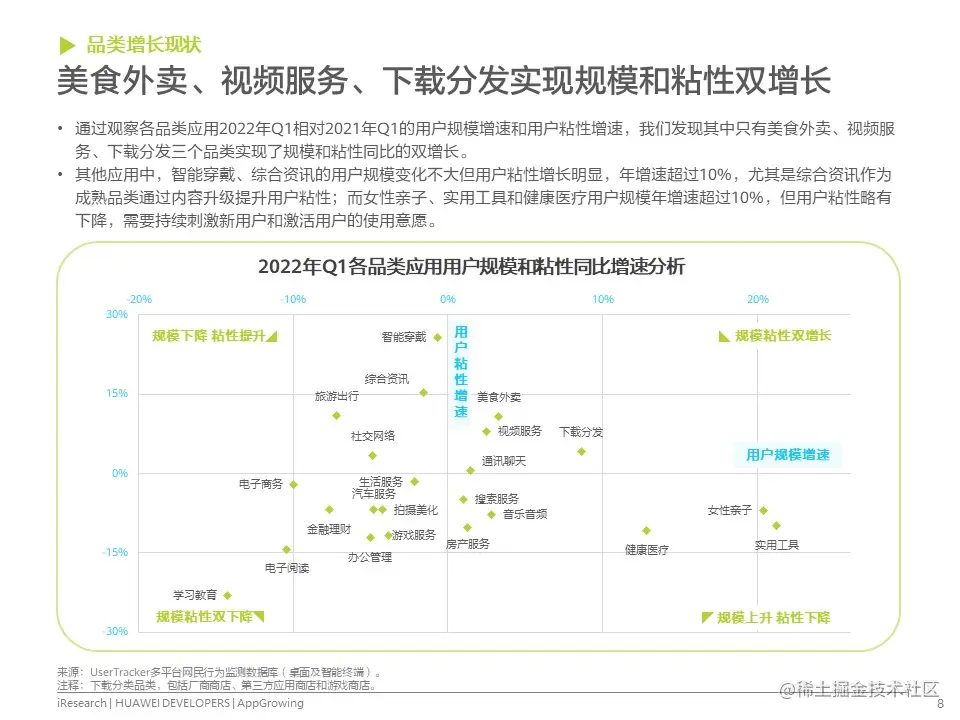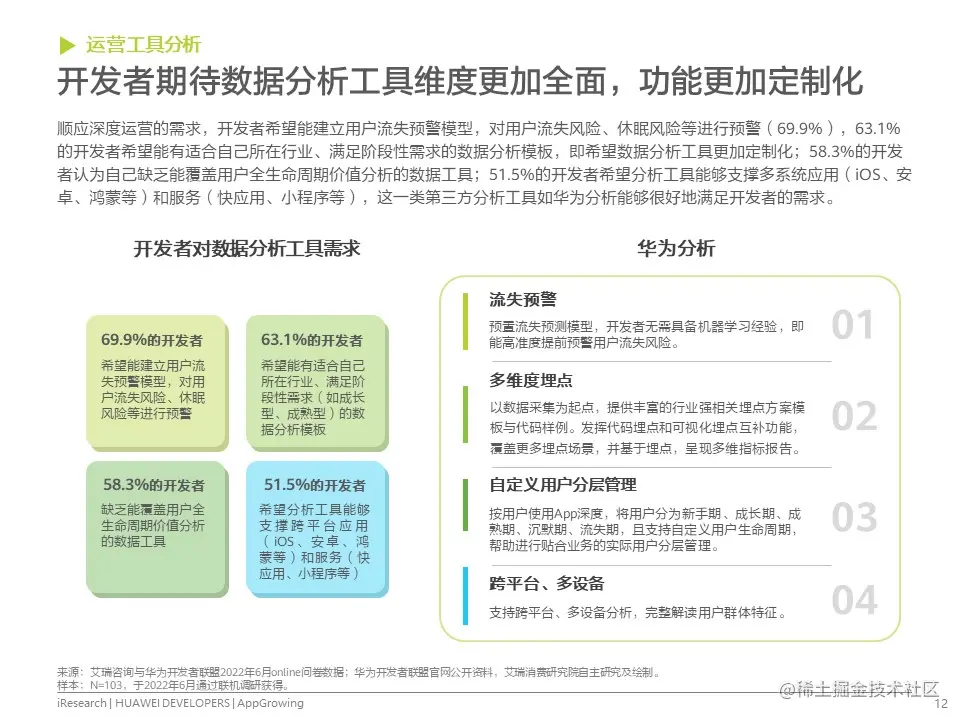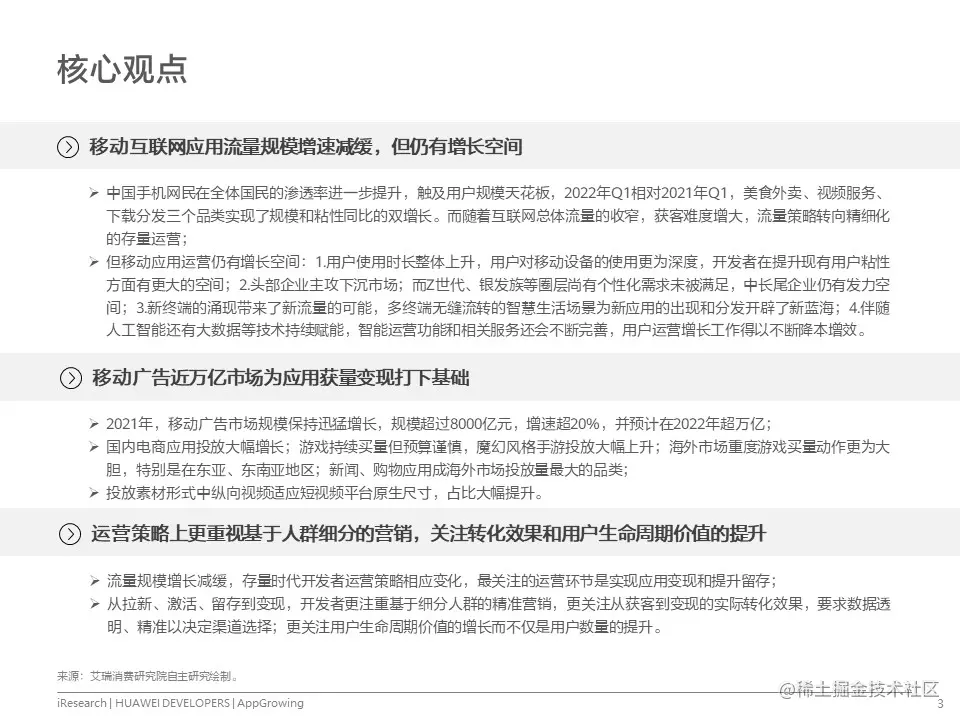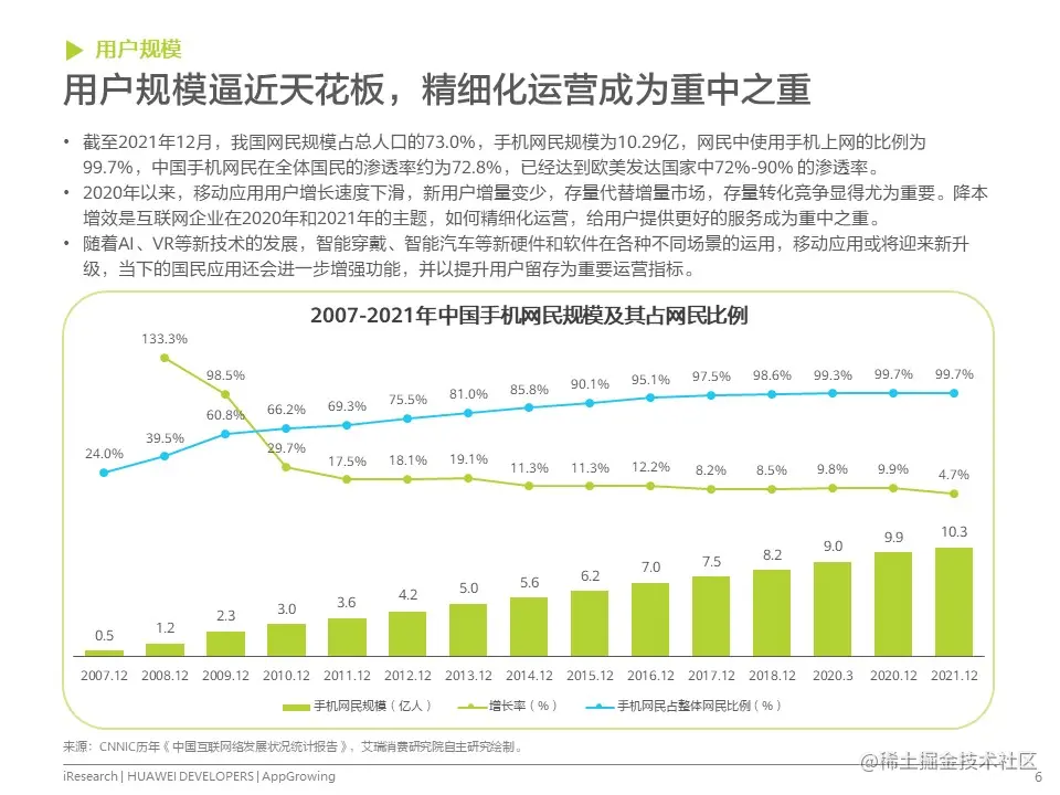 华为开发者联盟、艾瑞咨询和AppGrowing联合发布《2022年移动应用运营增长洞察白皮书》,本白皮书意在展现国内移动应用运营增长的现状、广告投放趋势,分析和探讨移动应用的运营思路变化和相关的运营服务革新,为开发者提供最新市场洞察,并针对用户增长的各个阶段的挑战呈现解决方法,助力移动应用获得用户和营收增长。