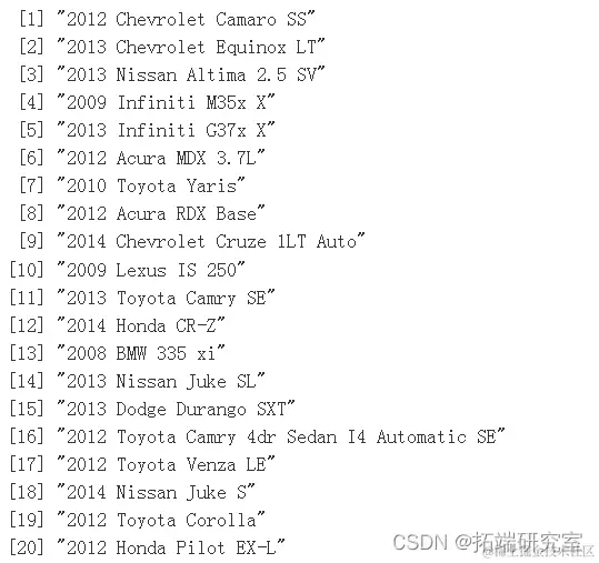 在网站上搜索汽车时,通常是年份、品牌和型号,按顺序排列。请注意,年份和品牌(即制造商)是数据集中的独立变量。但是,请注意数据集中调用的变量是 year、make 和 model。因此,如果我们可以解析每个标题的文本字符串以提取模型,我们可以为模型导出我们自己的独立变量。