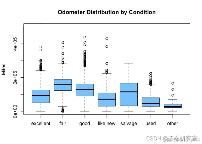 boxplot(odoution bb = "Miles")