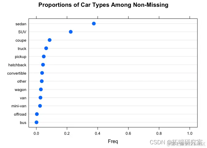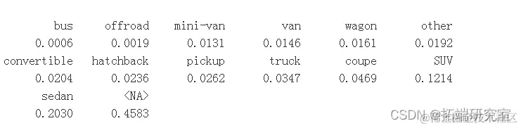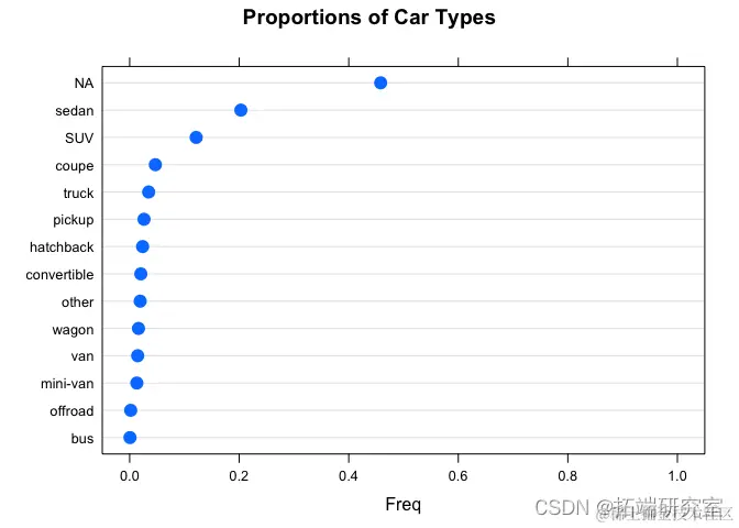问题#4 有哪些不同类别的车辆,即类型变量/列?每个类别的比例是多少?