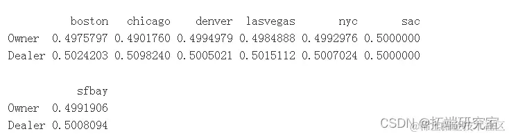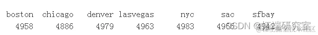 有点可疑的是,所有城市都有大约 5000 个观测值,并且每个城市内的百分比几乎是完美的 50/50。