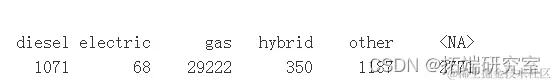 # 对于几乎所有的数据,燃料=汽油。