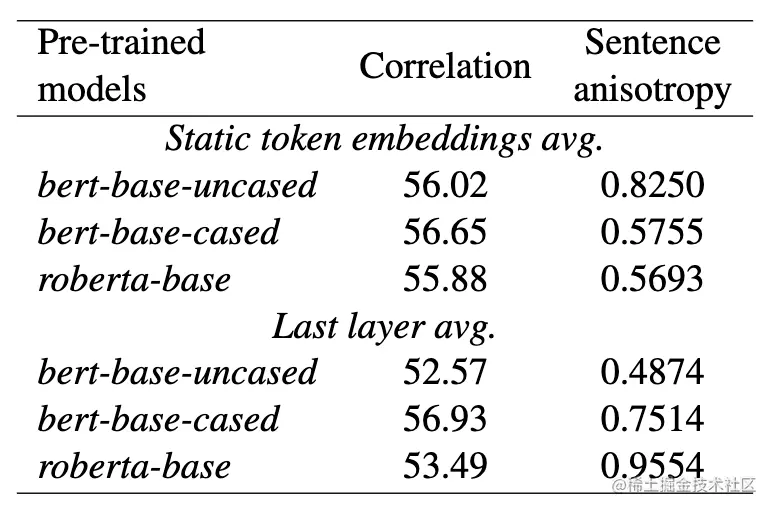 上表是随机抽取若干词,计算他们之间的平均个余弦相似度。可以发现roberta-base的效果比bert好些。作者在文中还可视化了各种特征(词频、大小写、子词)等对嵌入的影响,若感兴趣,可以进一步看看文中的一些描述。