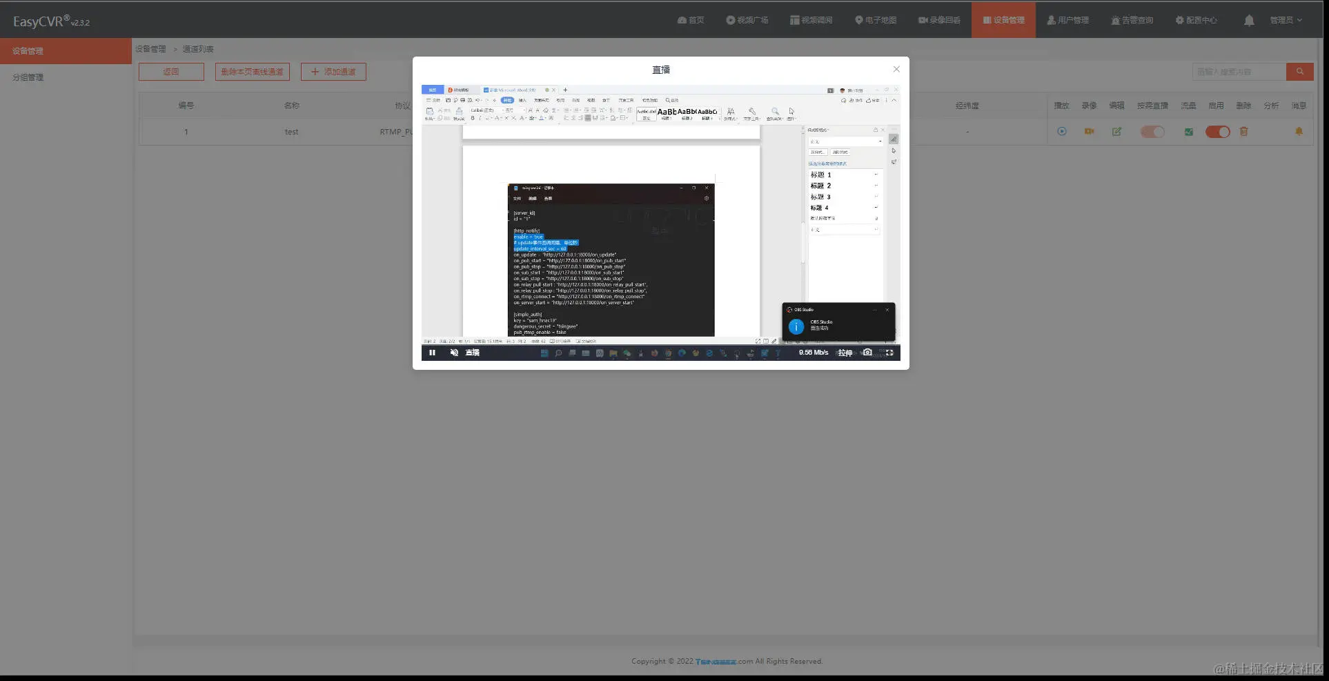 有用户从现场反馈,EasyCVR配置RTMP推流之后重启服务会导致RTMP离线。为优化平台功能,提高用户体验,技术人员立即开展处理,以下为解决步骤: