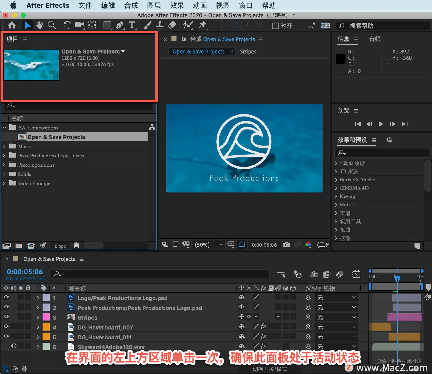 在界面的左上方区域单击一次,确保此面板处于活动状态。