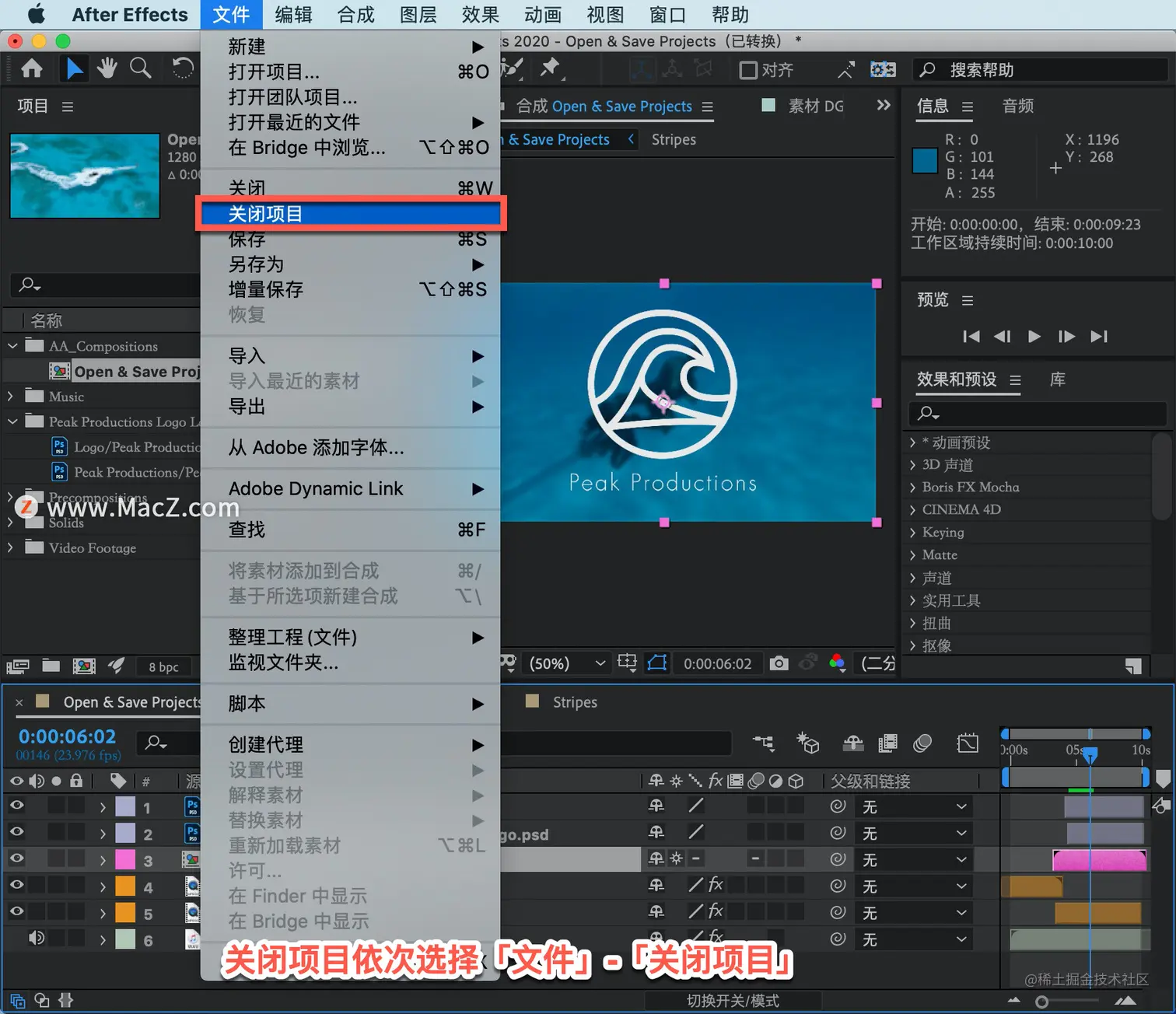 关闭项目依次选择「文件」-「关闭项目」。