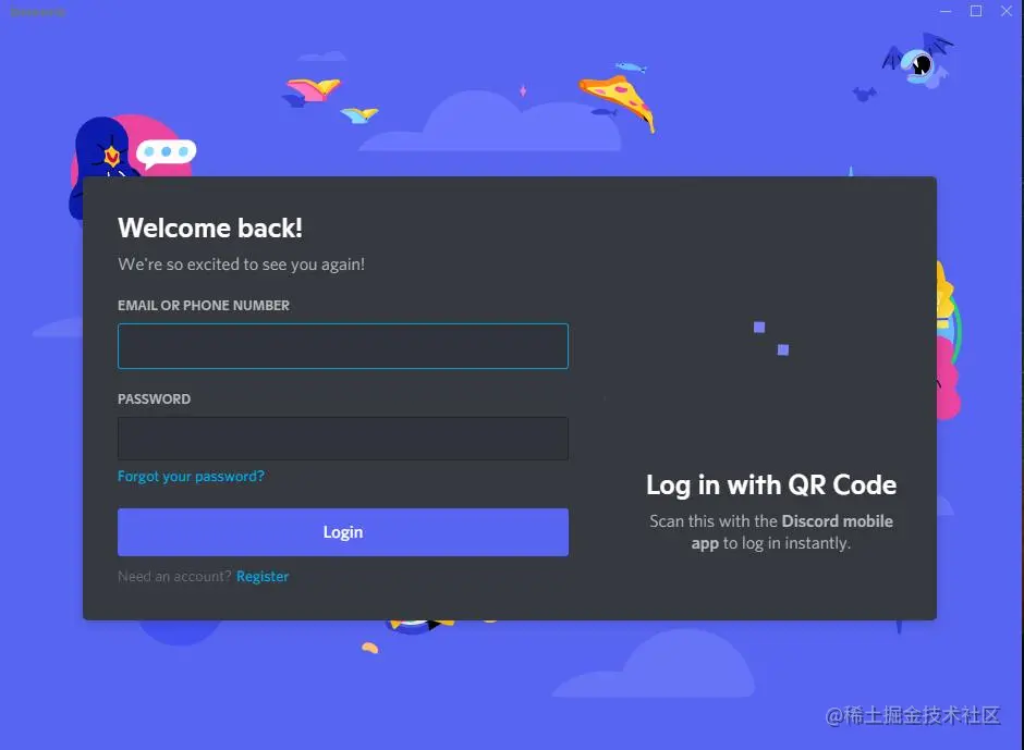 点击 "注销 "按钮,你将注销 Discord,并在你的系统上看到以下屏幕。