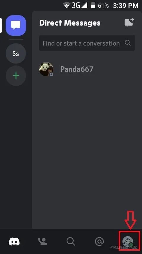 现在,我们将演示在安卓上注销 Discord 的方法。要做到这一点,首先,打开安卓系统上的Discord,点击用户设置图标,该图标存在于主视图的右下方。