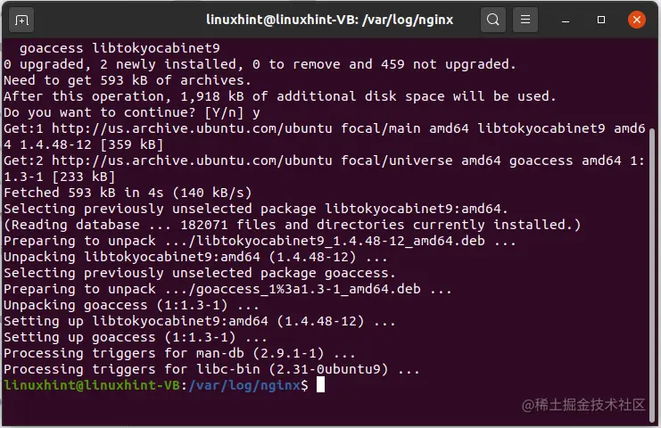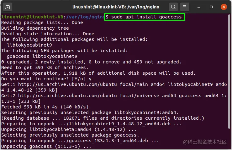 但是,为了演示使用在线分析工具解析Nginx访问日志的过程,我们选择了Goaccess。要使用Goaccess解析Nginx访问日志,必须先在系统上安装它。