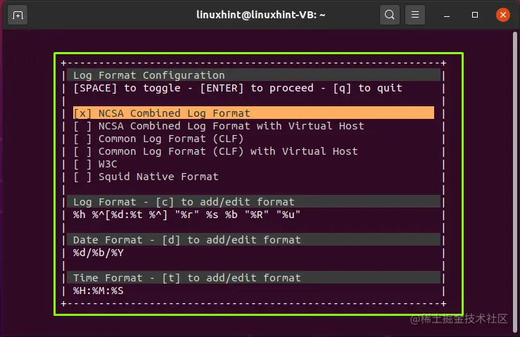 现在,选择一种日志格式,然后按 "Enter"继续。