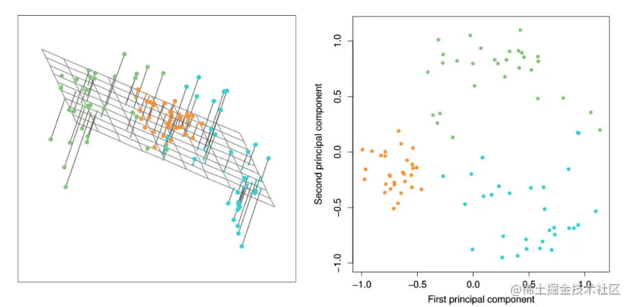 用同样的方法,我们可以通过为这些三维点找到最佳的平面,将点从三维近似到二维。我们所需要的就是找到这个平面,将所有的点投射到这个平面上,对它们进行总结并取其平均值。最好的近似将是具有最小平均投影误差的平面。